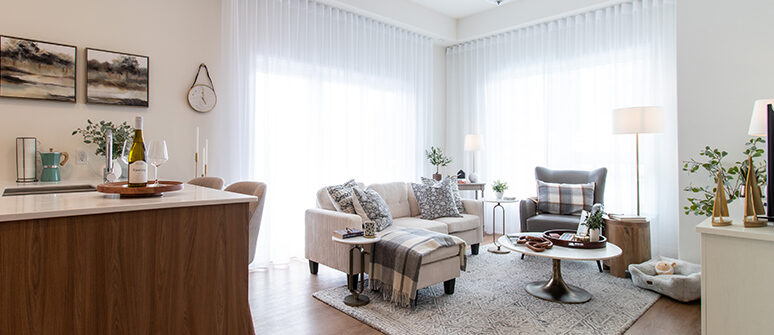 The Two-Bedroom + Den features a spacious open-concept living area. Featuring 2.5 spa-like bathrooms and a den with custom-built shelving, you’ll appreciate the functional conveniences built into this floor plan.